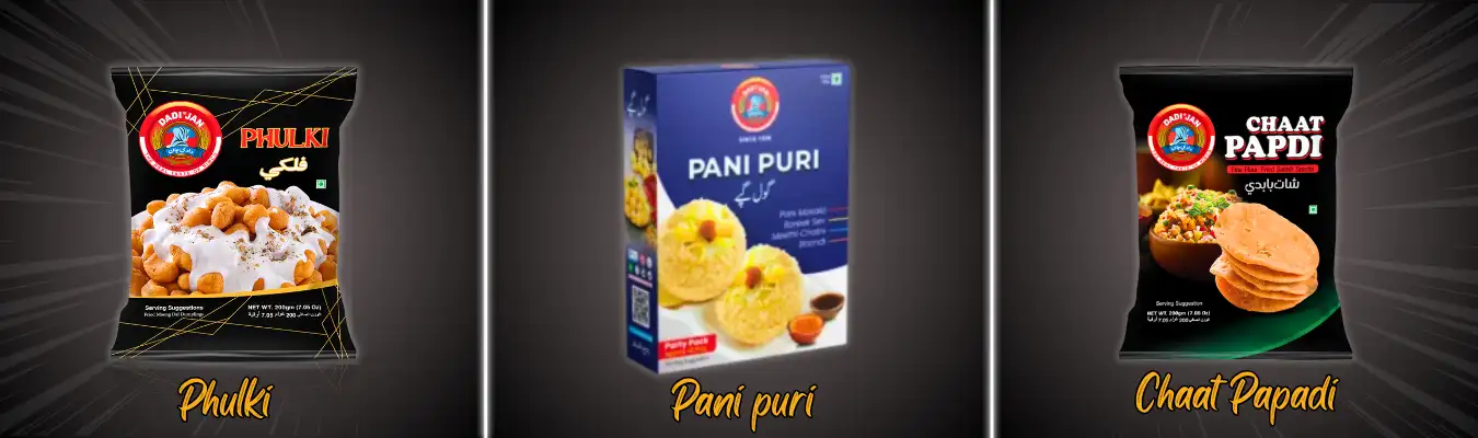 As Dadijan papad is a Top Best food brands in Pakistan, we are not only produce papad but also nimco & Snacks too like Chaat Papdi. Chipstoz, Phulki, PaniPuri, Fried Onion, and at the other hand in sweet we are selling Best quality of Pheni, Indian Famous amm papad , Imle Slice, high protein snacks like Peanut Chikki, and our most demanding items are Hyderabadi Bariyan &Hyderabadi Dahi Mirch